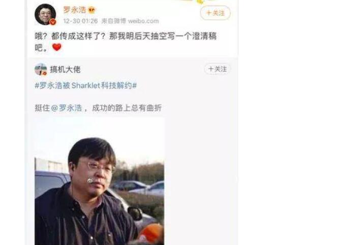 从罗永浩的回应来看,似乎其中有一段复杂的故事,究竟是罗永浩被鲨纹科技解约,还是另有隐情,尚不得知。