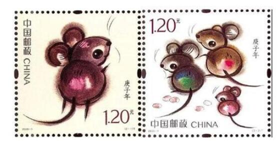 据了解,庚子鼠年生肖邮票为1套2枚,图案内容分别为“子鼠开天”和“鼠兆丰年”,面值均为1.2元。