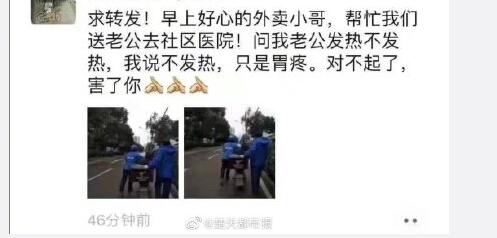 外卖小哥送胃疼病人去医院,病人被确诊新冠肺炎?平台:属实希望好心的递小哥不会有事