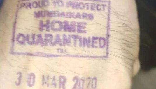 这并不是针对境外人员,对于境内人员也是这么处理的。随着印度马哈拉施特拉邦新冠肺炎病例的增加,马哈拉施特拉邦政府周一开始给所有接受过医学建议应该进行居家隔离的人身上盖章,章上写着“居家隔离”字样,这一措施是为了确保这些被建议隔离的人能自我隔离14天。