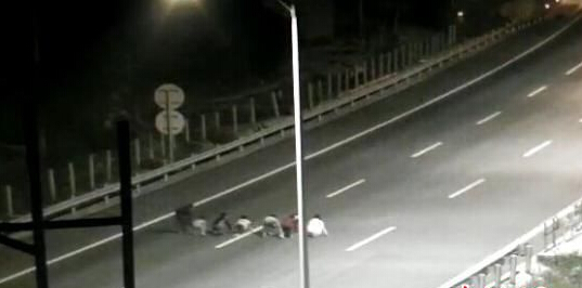 孩子们将高速公路当成跑道赛跑。 警方供图 摄