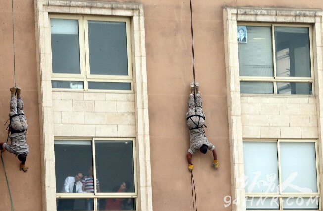 据悉,黎巴嫩士兵每年完成训练都会举行这种仪式。图为黎巴嫩突击队士兵展示绝活。