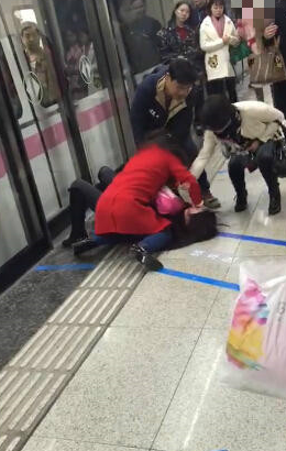 昨日,一则名为“地铁里,大妈欺负小姑娘”的视频在网上疯传,不少网友转发后直言,这样的行为 实在太不文明。 这段25秒长的视频里显示,武汉地铁2号站内,一名红衣妇女将一名年轻女子推倒在地,趴在她身上,用手拉扯她的头发。倒地女子试图反抗、站起来,无奈一直 被红衣妇女压在地上,场面十分不堪。
