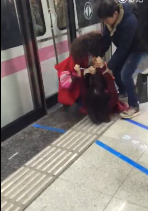 发视频的郑先生介绍,前日下午5时,他乘坐地铁二号线,去往金银潭方向。到站后,下车的人很多,走在后面的一位年轻女 子说了句“快点走”,前面一位中年妇女听到后,以为是在说自己,就瞪了年轻女子一眼,女子回了句称并非在说她。随即两人开始争吵起来,中午女子动手抓年轻 女子的头发,双方厮打在一起,年轻女子相对弱势,几乎没有还手之力。