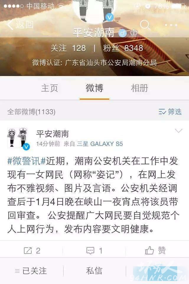 潮汕网络红人姿记发布不雅视频与图片被拘带走调查
