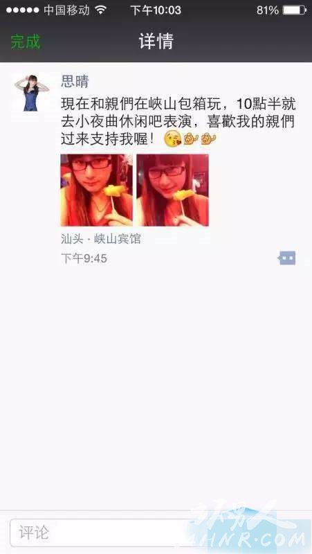 书继9:45分在朋友圈发动态,说是10点半在小夜曲休闲吧表演!