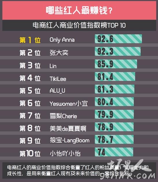 《2016中国电商红人大数据报告》(以下简称《报告》)显示,2016年红人产业产值(包括红人相关的商品销售额,营销收入以及生态其他环节收入),预估接近580亿元人民币,将超过2015年中国电影总票房,也相当于国内最大连锁百货百联集团2015年全年销售额。基于该预测,报告给出了“红人比电影明星更值钱”的断言。
