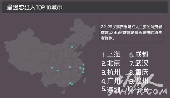 地域分配上,上海、北京、杭州成为了对网红“最买账”的前三城市,而二线城市的粉丝们买下了网红店铺里一半的商品,像四川、湖北等内陆省份,对于网红的追捧全国也是名列前茅。