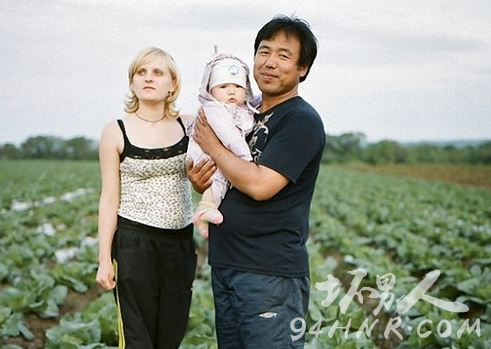 古(40岁)与妻子塔蒂亚娜(25岁)合照,波尔塔夫卡村的农民。刚开始女方父母反对他们在一起,后来男子为了塔蒂亚娜放弃了中国国籍。
