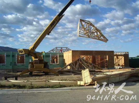 房屋的骨架在工厂预制后运输到现场后进行直接组装。