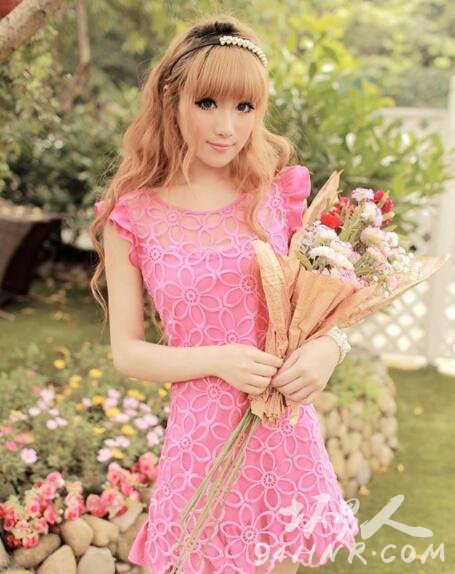 唯美钩花刺绣、木耳边下摆、韩味修身、气质连衣裙,偏小的,属于超短裙!
