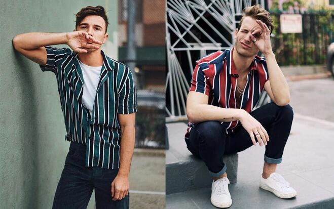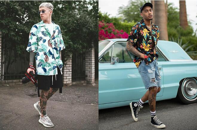 不过其实我们今天要讲的不只花衬衫,其他素色与条纹衬衫都是夏日增加视觉效果的重点,穿搭方式有单穿、配白色素T、扎进裤子内、不扣或仅扣中间几颗扣子等等,方法很多种,不仿都尝试过一遍看哪样最顺眼。再来就是同样和身上别的元素作颜色呼应方式,帽子啦、鞋款啦、袜子啦等等、看起来能更加一体成型。