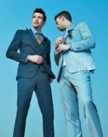 提及条纹又怎么能忽略经典的西装呢?强烈建议通身穿着,因为你会发现条纹西装是无法与其他单品混搭的,三件套的款式自然最起范儿,若想要提升时髦感可以在细节上花点心思,比如说加入一件网眼针织衫。