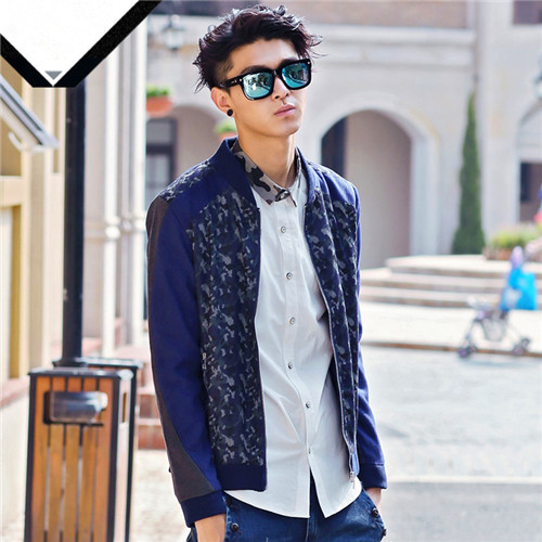 迷彩时尚继续流行,和拼接元素完美融合,打造一款时尚潮流立领修身夹克。上装选择深浅搭配,衬衫的迷彩拼接,很好的配合迷彩外套。下装选配蓝色修身牛仔裤,这一身属于同色系搭配,非常适合矮个子男生。鞋子也不一定要一味的追求鞋裤一致色,深棕色和牛仔蓝搭配,更显青春活力,打造街潮风范。