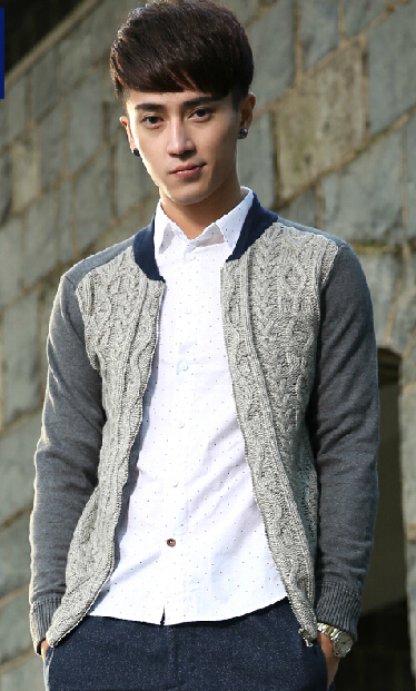2005韩版男装2015春装新款男士浅灰色针织开衫拼接潮毛衣外套,这是一款非常精致的韩风帅气衣服,也非常的实用和百搭。