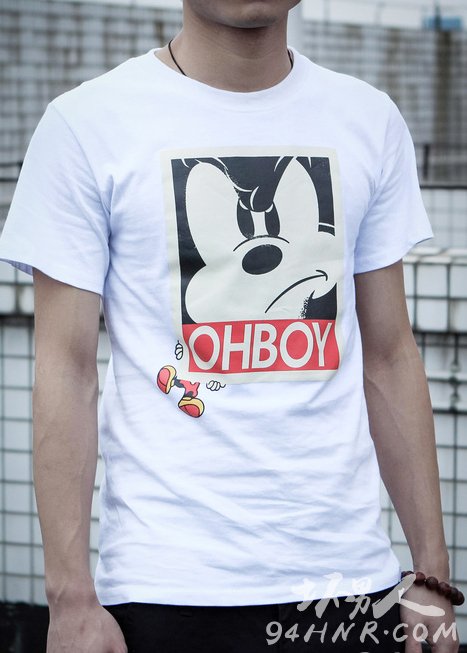 青春系米奇图案,也是不一样的味道,穿起来更有活力!帅帅的靓仔装,打造一个绝对惊艳的潮流范儿,有时候不一定是字母组合的图案的T恤,就是这样简单的一款印花图案的白T恤也能打动女孩子的心哦!