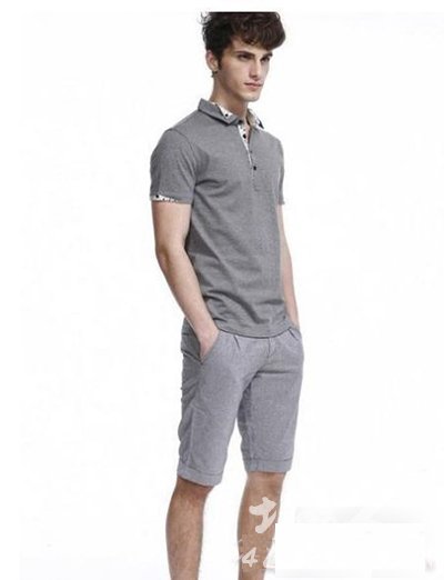 灰色总能给人沉稳大气的感觉,灰色短袖T恤亦是如此,polo领是成熟的代表,在炎热的夏季如果嫌搭配厚厚的长裤太难受的话可以尝试灰色五分休闲裤,效果也是极佳的。