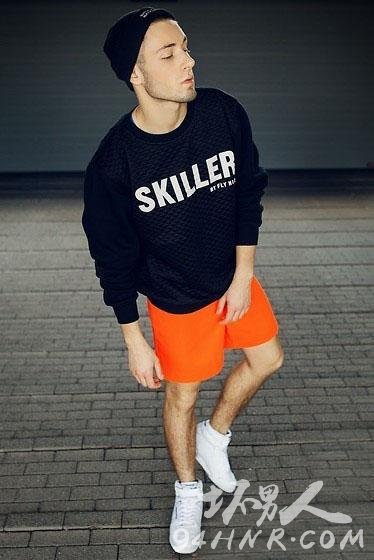 这款橘红色短裤释放着一股俏丽的感觉,这时候你需要一件薄款的卫衣与之搭配,既能掩饰这种过于艳丽的感觉,也会让整个造型显得十分动感。一双高帮运动鞋会让你的整个造型加分不少哦!