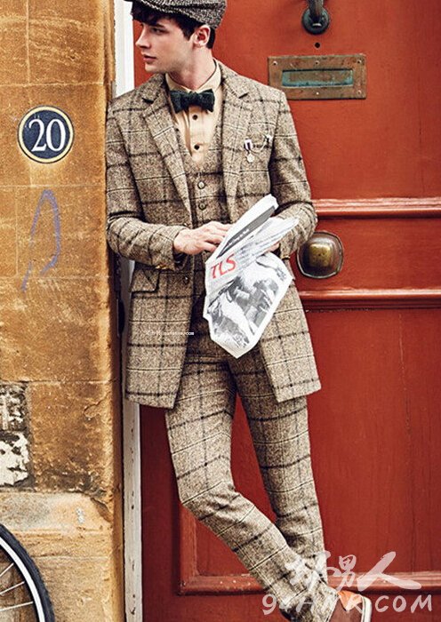 整身的格子套装非常有有绅士气息,搭配蝴蝶结和马甲背心非常有型,男人的魅力尽在其中!
