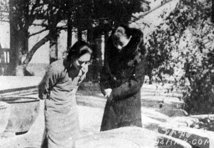 韩复榘二夫人纪甘青陪同蒋夫人宋美龄在珍珠泉大院观鱼