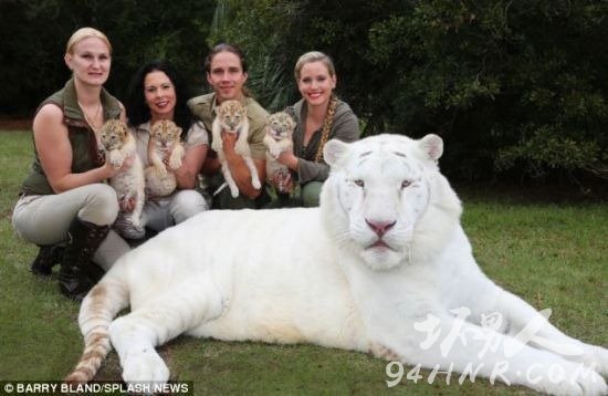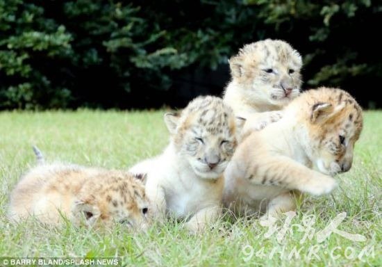 全球首见的4只白色狮虎兽