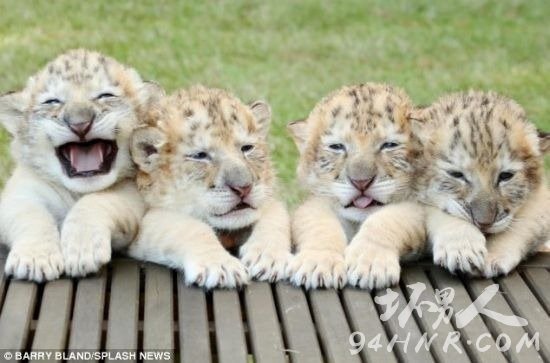 英国「每日邮报」报导,美国南卡罗来纳州月桂堤野生动物园出生 6 周的 4 只雄狮虎兽日昨亮相,他们是世界上绝无仅有的猫科动物,在全球 1000 只狮虎当中是唯独的白色狮虎。