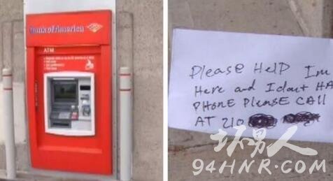 求救者是一名维修人员,他进入自动取款机后部的房间换门锁,不慎把自己锁在屋里,而且没有随身携带手机。他通过自动取款机的收据出口传出字条,写着:“请救救我,我被困在里面了。”