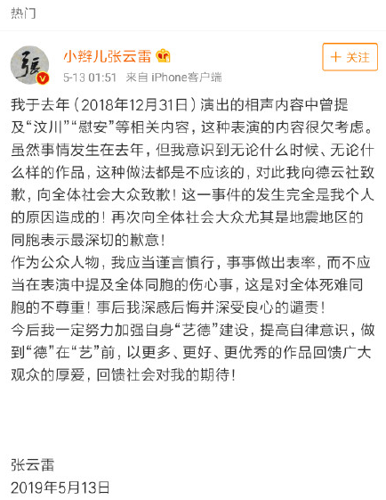 张云雷近期可以说是热搜上的红人了,原因就是其拿汶川地震的事情做段子来调侃,这一事件被挖出后可以说是网友们纷纷直接炸锅了,更是引来紫光阁微博官方点名批评,而这件事情却持续发酵,张云雷可以说是真正的要凉凉了,下面小编就带大家一起看看究竟怎么回事吧。
