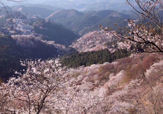 日本奈良县闻名的吉野山三万棵樱花樱花树覆盖图片(组图)