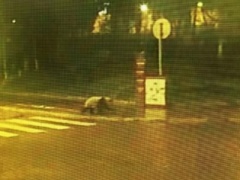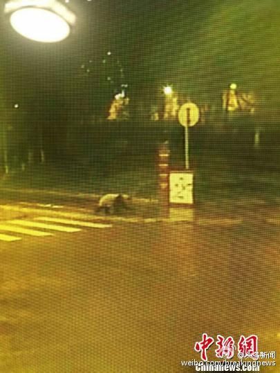 四川汶川县大熊猫半夜闲逛走斑马线视频