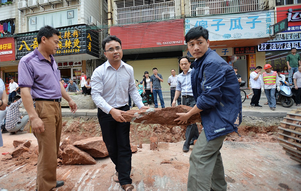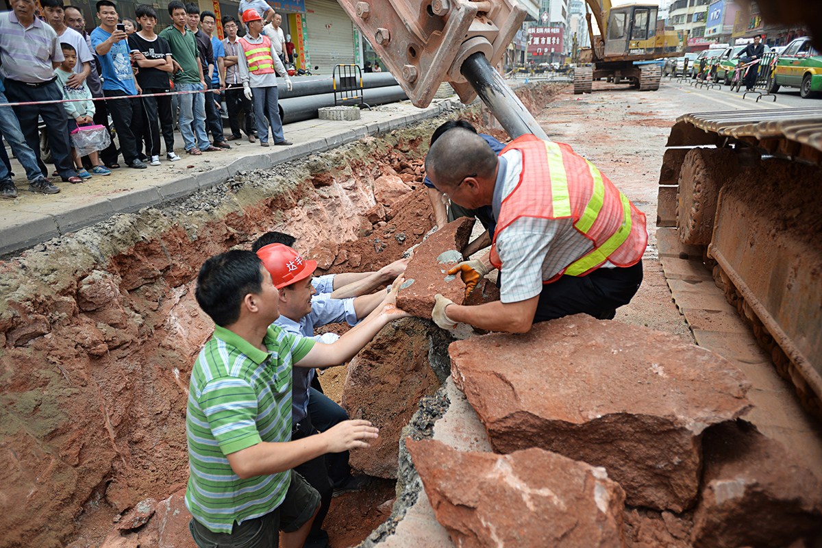 广东河源市区大同南路道路改造挖出43枚恐龙蛋化石(组图)