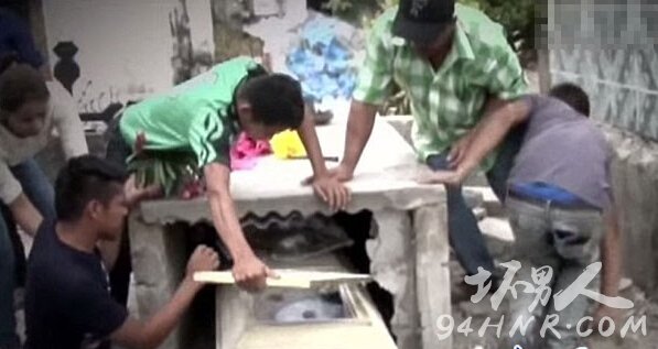 2015年8月25日报道,一名洪都拉斯16岁少女裴瑞兹(Neysi Perez)因听到枪声,惊吓晕倒,口吐白沫,被医院宣判死亡,但装棺下葬后1天,她的丈夫突然听到她在水泥墓中尖叫捶打,连忙破墓救人,虽经医护急救,还是宣告无力回天。图为少女亲属击破水泥墓,把被活埋的人救出来。