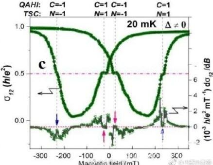 在后续的实验验证中,激动人心的成果出现了:王康隆等实验团队确实看到了“1/2的台阶”。这半个基本电阻来源于马约拉那费米子作为半个传统粒子的特殊性质,因此,多出来的半整数量子平台为手性马约拉那费米子的存在提供了有力的印证。