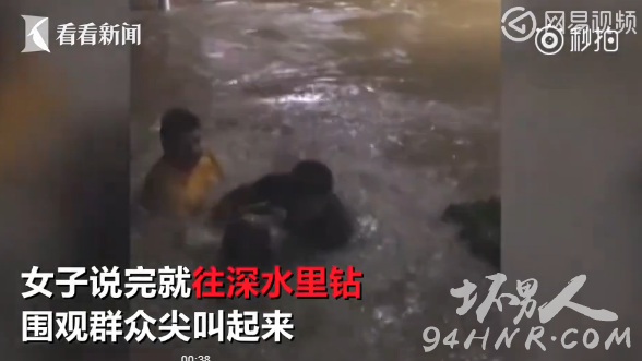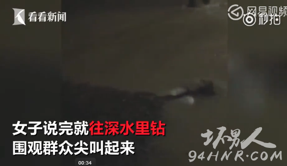 情绪激动之下,女子数完三秒立即就往深水里钻。围观的群众都尖叫了起来。