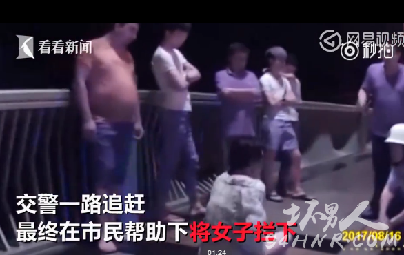 女子在岸上一直发泄砸自己的手机,趁交警不注意时竟然不留神又撒腿往桥上跑。交警一路追赶才将女子成功拦截住。