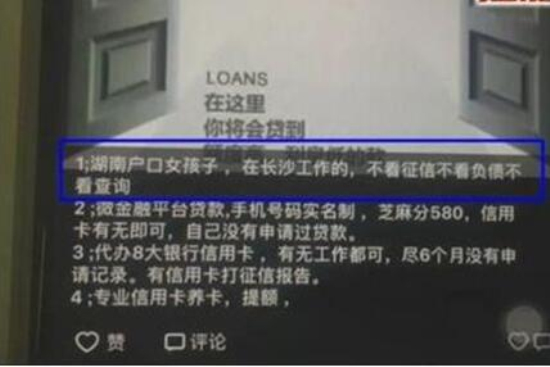 很多网友都在网络吐槽如今新出现的一种民间借贷方式-佳丽贷害人不浅,佳丽贷的贷款广告声称只要是年满18岁的女性便可凭借身份证办理万元贷款,且不查征信不看负债保证当日付款,但是审核的时候却是需要女性贷款人的素颜生活照。