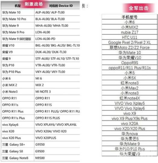 5、《绝地求生:全军出击》和《绝地求生:刺激战场》的适配机型对比