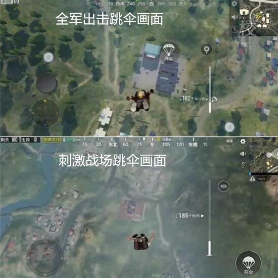 4、《绝地求生:全军出击》的画面显得色彩比较明亮,跳伞的时候看的很清楚,《绝地求生:刺激战场》就很真实了,跳伞从空中看有云雾,这一轮是《绝地求生:刺激战场》比较好。