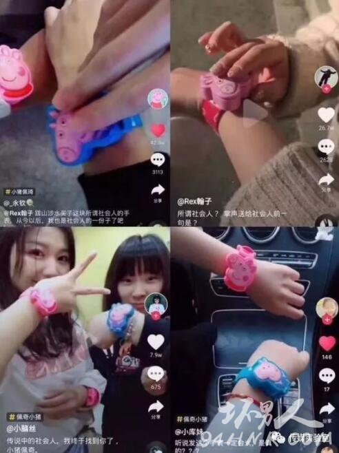 也不知是谁改成这样的不过视频就这样被抖音上的网友疯狂的传播然后就彻底走火了,火的莫名其妙,然后渐渐的会有一些人戴小猪佩奇的手表或者纹身贴以及穿印有小猪佩奇图片的衣服出现在大街小巷和抖音之中,慢慢的连连娱乐圈中的明星也被感染了。