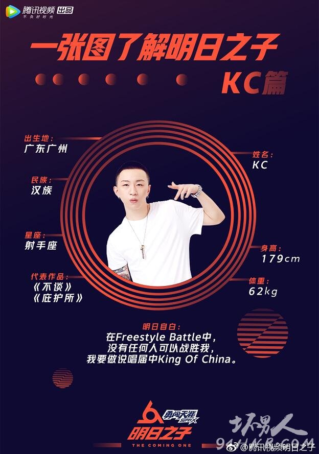 kc目前暂时居住在上海,还是一名漂流歌手,KC表示在在Freestyle Battle中没有任何人可以战胜我,他要做说唱届中King Of China,不过这个可能志向就有点远大了希望他能在这条路越走越远实现他的梦想。
