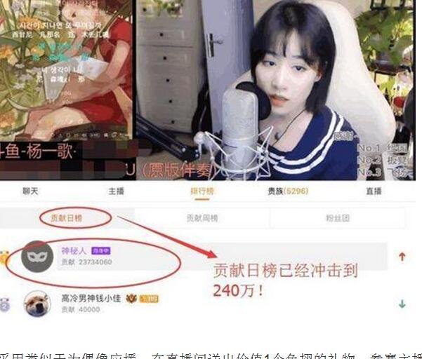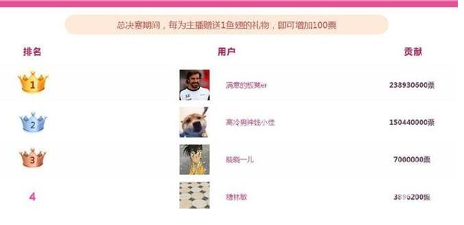 活动采用类似于为偶像应援,在直播间送出价值1个鱼翅的礼物,参赛主播就会获得100票,这位叫做杨一歌的主播一共2亿3千万的票几乎都是一人所刷。