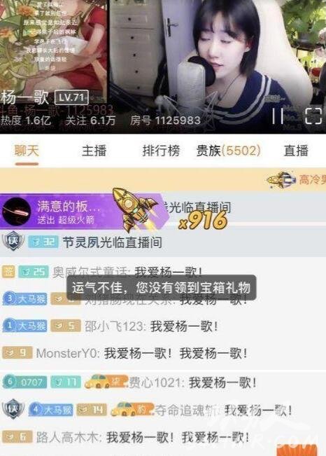 那这个杨一歌到底是一个什么主播?突然吸引到土豪给她霸榜?刷礼物呢?后来如果你再点进去这个杨一歌的直播间,直接就变样子了。