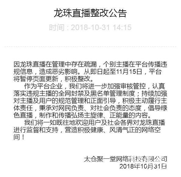 当然,龙珠的停业整顿对于直播圈来说并不算结束只是一个开始,相信在接下来一段时间直播行业还将面临着严峻的考验,撑得过去自然是皆大欢喜,撑不过去像龙珠这样停业整顿算比较轻松的惩罚咯。