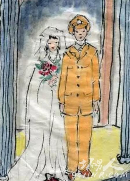 我们的婚纱照 举行婚礼后,美棠和我在礼堂门口合影,原照片早已损毁,但脑海中的记忆犹存。
