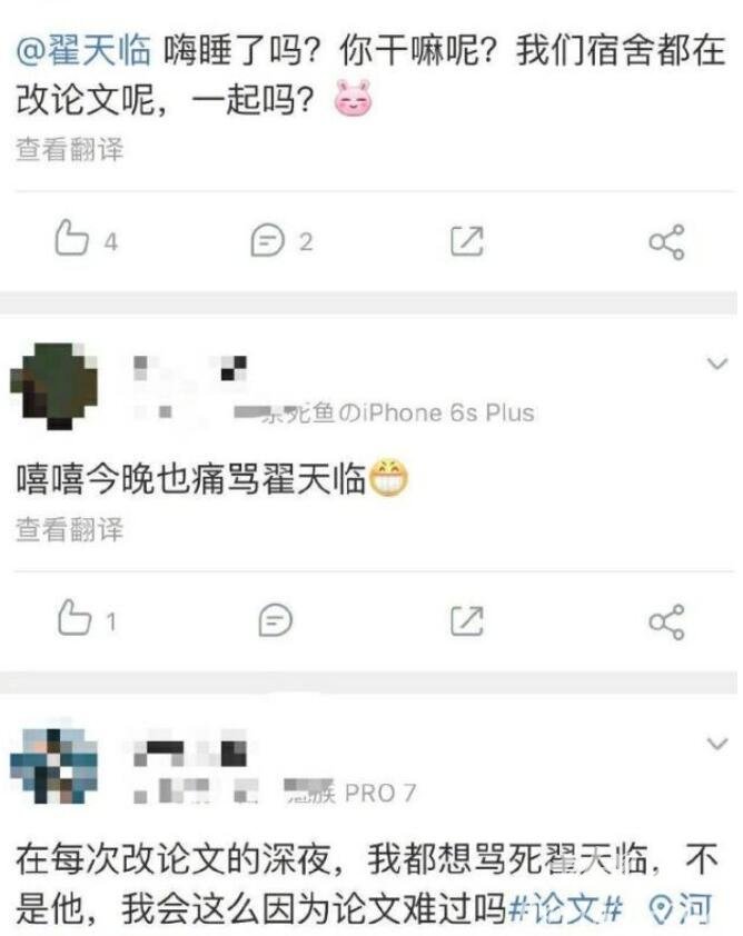 最近,在即将毕业的学生中流行着这样一句狂野的问候。同学,你论文写改完了吗?不仅如此,还出现了大量凌晨2-3点的打卡问候,频率最高的是”翟天临你睡了吗?“不难猜出这些问候,都来自论文狗,对翟天临的怨念来自论文!