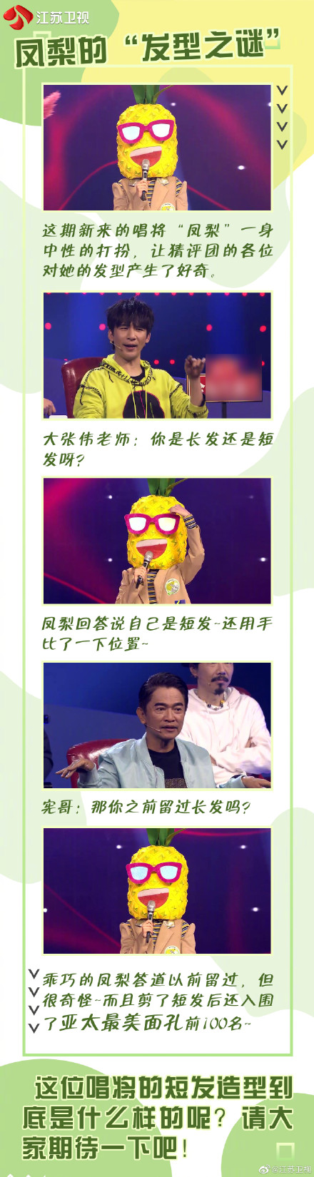 #Sunnee不是菠萝头##Sunnee是嘿!凤梨# 这一期又是有四个人揭面 ,而新上场的女嘉宾嘿凤梨其实就是火箭少女的杨芸晴了!