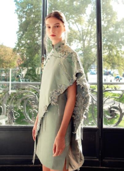 正常的旗袍是没有飘纱的,但是我把它融入到旗袍中,能展现东方女性的身材,同时这种很飘逸的东西,又能展现中国哲学里的闲适!