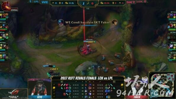 最后阵容。WE:上单皇子;打野挖掘机;中单加里奥;AD大嘴;辅助布隆;SKT:上单贾克斯;打野瞎子;中单蛇女;AD艾希;辅助扇子妈;