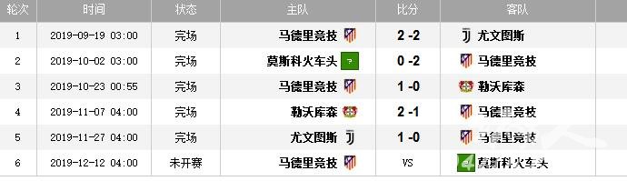 全场比赛结束,尤文图斯在主场1-0击败马竞,锁定小组第一。