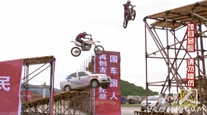 挑战由中国央视网在横店录制,当时的情形是这样的:四位来自于中国某品牌汽车特技表演队的成员,分别驾驶两辆汽车和两辆摩托车,从不同方向同时朝上坡行驶,在半空中同时跳至对面斜坡,最终呈现出四辆车在不同高度交叉跳跃的惊险场面。挑战要求任何两辆车不许有任何碰撞。所以这项挑战不仅需要团队成员本身个个技艺超群,更需要团队实现绝妙的配合!